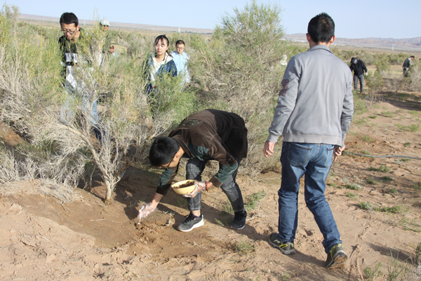 为了大力发展沙生产业,提高肉苁蓉接种成活率和选育肉苁蓉优良种子,内蒙古雅布赖实业有限公司积极与有关科研院所联系,进行肉苁蓉接种和选育工作。经过一年多的努力,现已与兰州大学草地农业科技学院达成合作意愿,成立了由该学院逆境植物生理学学科带头人 从2016年9月开始,实业公司与兰州大学草地农业科技学院肉苁蓉接种繁育攻关课题组在阿拉善地区进行了大量野外采集工作,包括土壤情况、梭梭生长情况、气候及区域环境信息采集等。经过选育筛选以及大量实验,培养出适合阿拉善地区梭梭生根的有机肥料——根际有益菌。