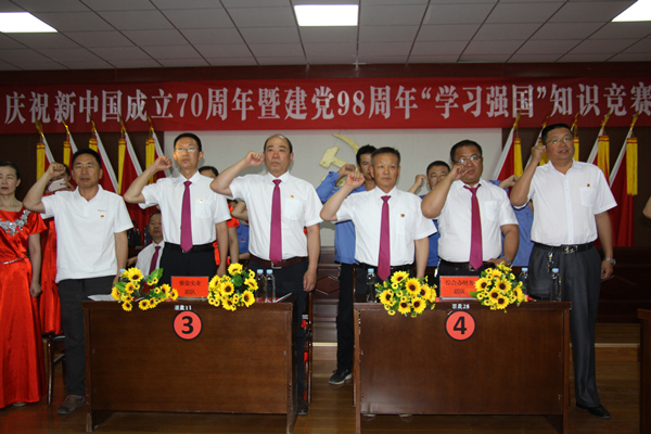 为庆祝建党98周年暨新中国成立70周年,7月1日晚,集团公司党委在五楼会议室举办了系列庆祝活动。集团公司党委班子成员李玉明、张菊萍、徐宪国及公司在岗全体党员、部分员工近八十人参加活动。