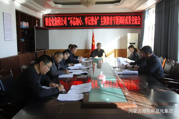 雅盐化集团公司党委于2019年10月26日下午组织召开“不忘初心,牢记使命”主题教育调研成果交流会。会议由集团公司党委书记、董事长孙刚德主持,集团公司党委委员及生产技术部、企业管理部、采盐分厂、精盐分厂负责人参加会议。