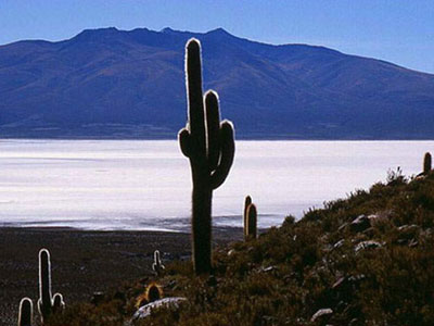玻利维亚乌尤尼盐沼 阿尔蒂普拉诺(或称“高平原”)是玻利维亚安第斯山区的一个大高原,海拔在3000米以上。在高原南端有一些冰融化时留下的盐湖,而在1万年前最后一次冰期未,湖水已逐渐流失。 |
