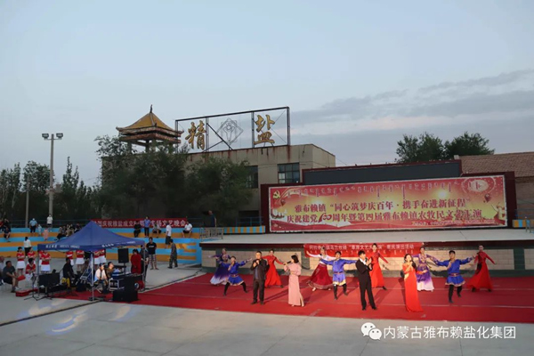 7月8日晚,阿右旗乌兰牧骑走进雅盐化集团公司,与企业联合举办消夏暨庆祝雅盐建场80周年文艺晚会。……